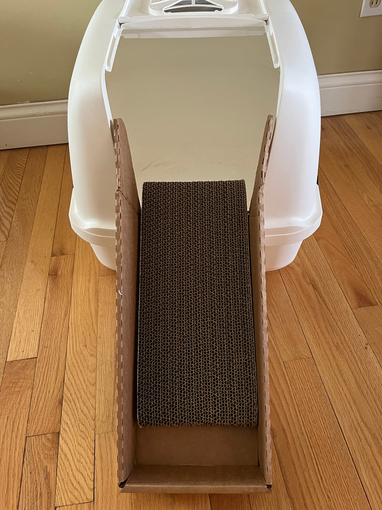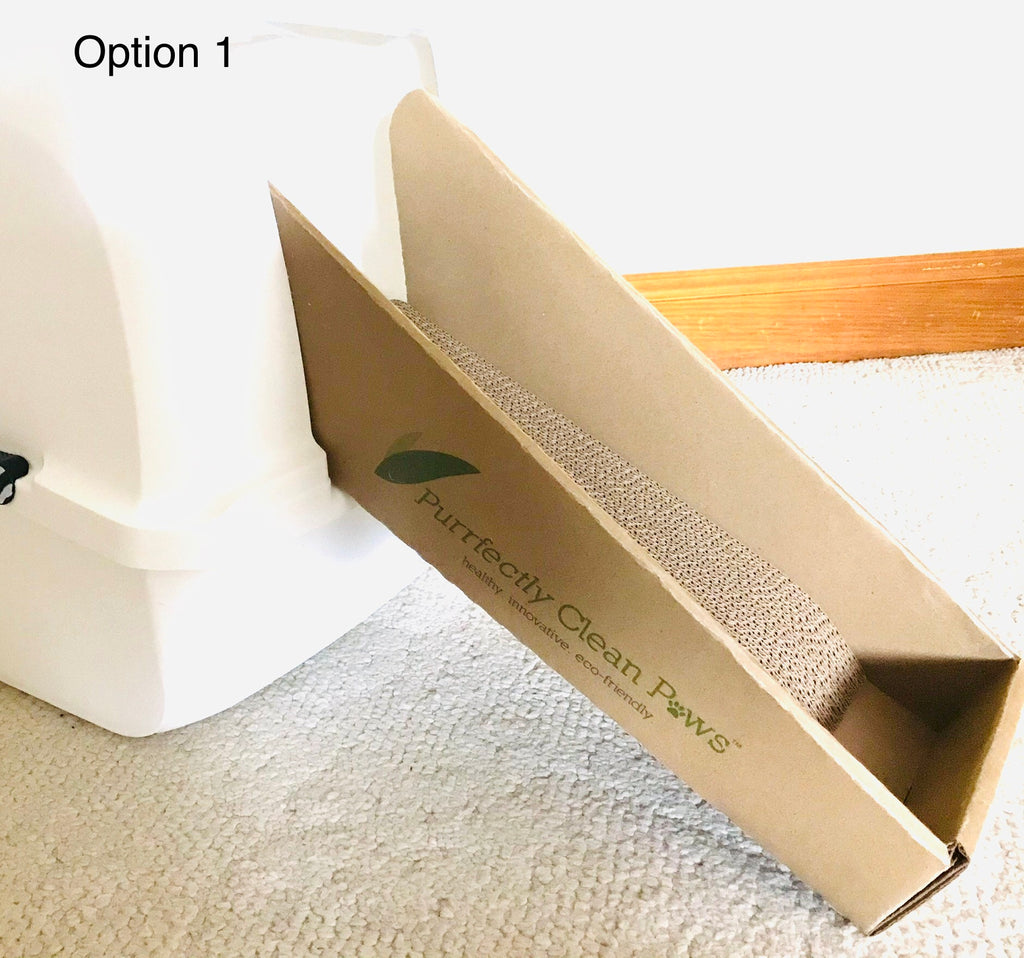 Litter box NOT included! All litter boxes shown are for example to demonstrate the versatility of litter box styles that are compatible for use with the PURRFECTLY CLEAN® PAWS RAMP only.